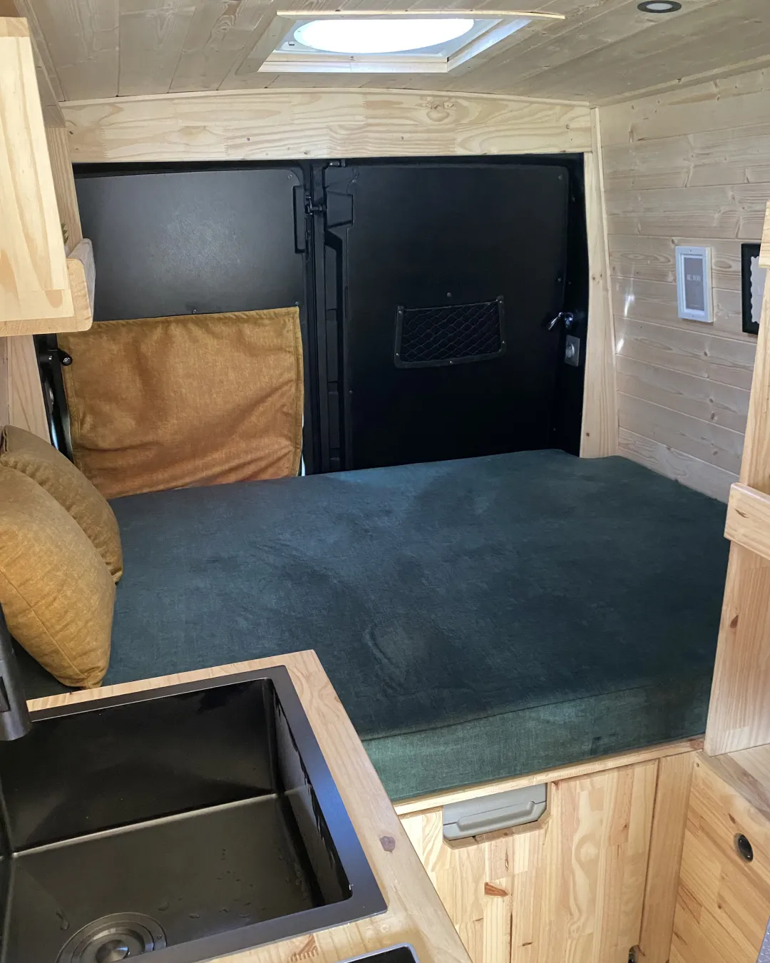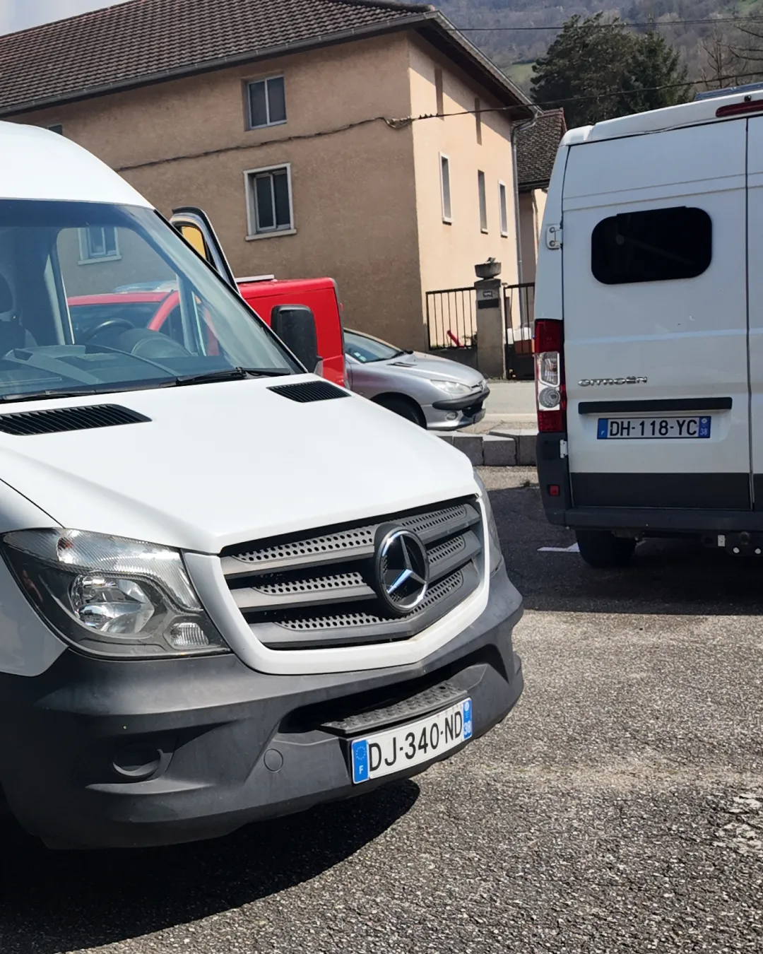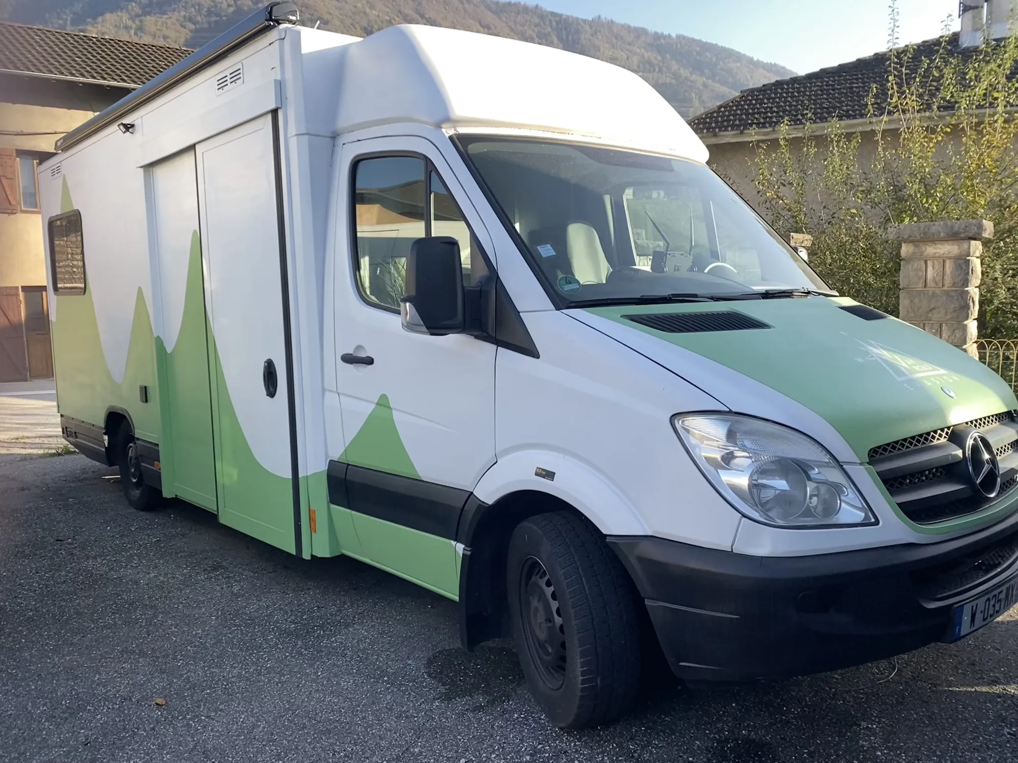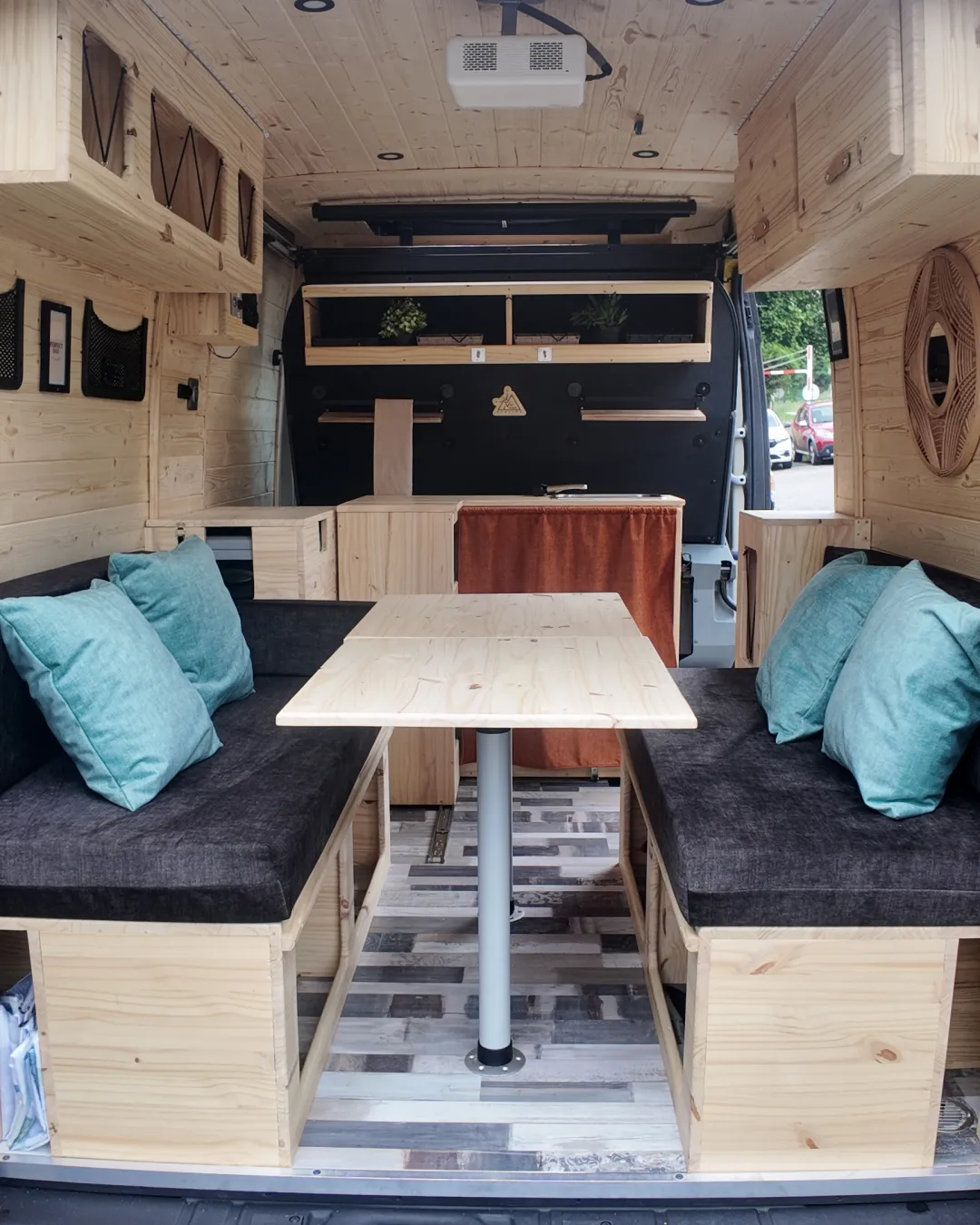 Un grand Mercedes Sprinter H3L5 totalement aménagé pour deux personnes.