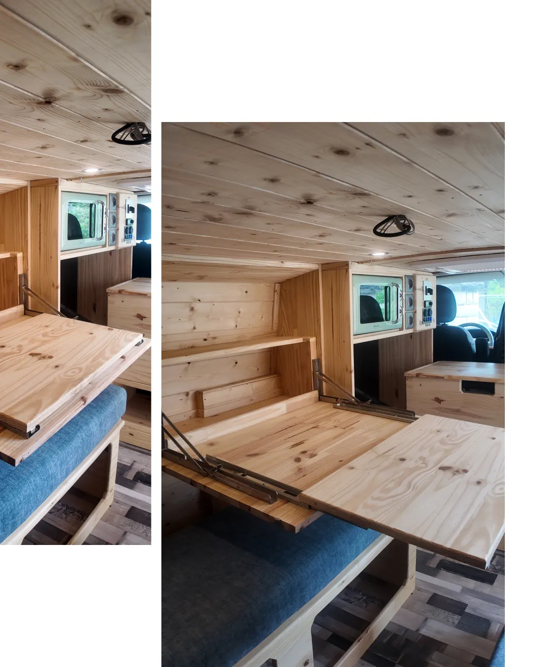 Découvrez quelques unes de nos van. Ces aménagements sont surtout du sur mesure, mais nous en avons plusieurs de nos formules.